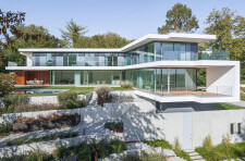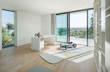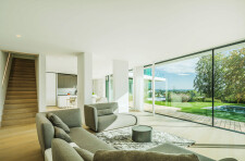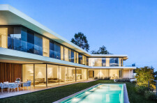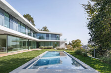 The villa near Ulm, designed by Weber + Hummel Architects, impresses with its modern aesthetics and harmonious integration into the landscape of the Swabian Alps. The architectural highlights include the elongated building wings that frame the pool area and the adjacent garden, as well as the floor-to-ceiling glazing.