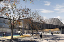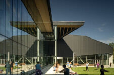 Running the length of a city block (146 meters), the facility is characterized by its dramatic black roof, which unifies its diverse functions into a singular form. The stepped elevation transitions from the reestablished ravine to the residential streets, achieving a human scale where the building meets the ground. Two civic plazas anchor the structure: the South Plaza, with its rain garden and ceremonial bridges, and the North Plaza, a playful, urban space designed for activity and informal gathering.