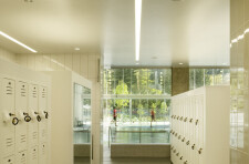 Inclusivity is central to the design. Fully universal washrooms, adult change tables, transfer ledges, zero-entry pools, and ramps ensure access for all. High-contrast signage, tactile directories, and multiple changing room configurations further emphasize accessibility. The project received Rick Hansen Foundation Accessibility Gold Certification in 2024.